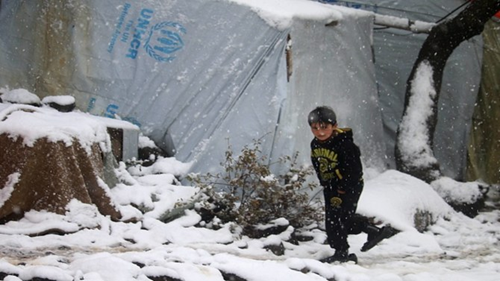 極寒に震える難民