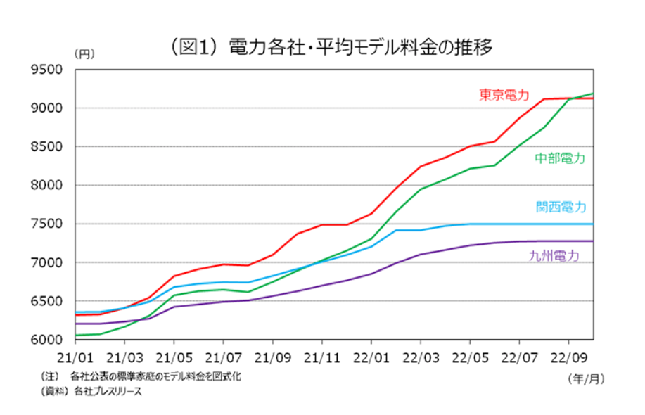表を見ていただければお分かりになると思いますが、電気料金は2022年に急激に上がっています。