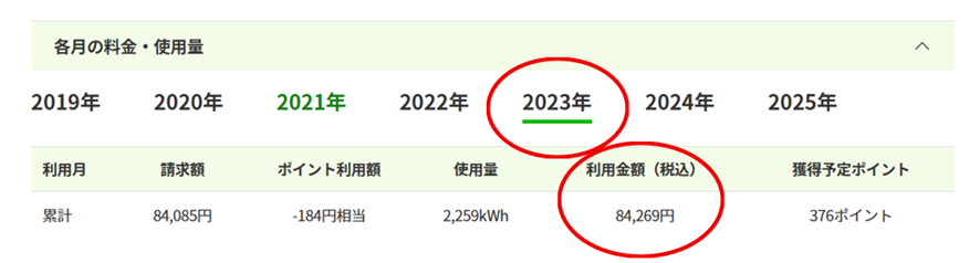2023年に電気料金が少し下がっているのは、エネルギー価格の高騰を受けて政府が補助金を支給したからだと思います(支給期間:2023年1月~12月)。