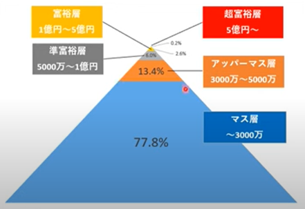 今回の記事で扱う「お金持ち」は、この層とこの層の一つ上のアッパーマス層です。