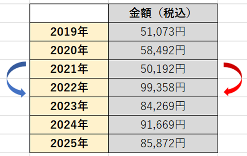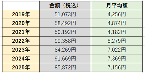 それが今では、一番安い時期でも4,000円ぐらいです。月に換算すると7,000円以上になっています。